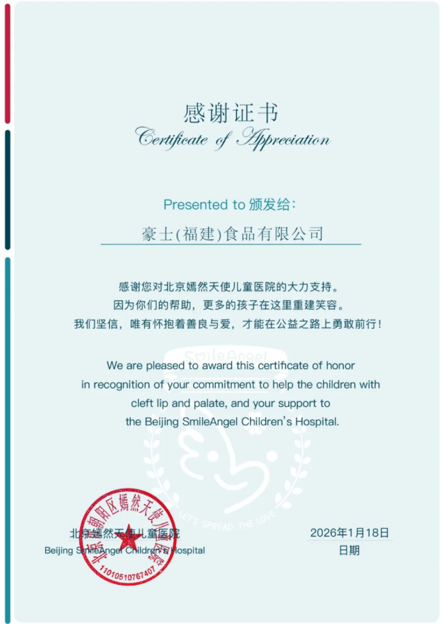 豪士面包成立30余年,始终秉持“我们只用真材实料做好面包”的理念,在深耕高端烘焙行业的同时,也将践行企业社会责任融入发展之中,多次在社会公益事件中主动伸出援手。此次对嫣然天使儿童医院的捐赠,正是企业用实际行动传递品牌温度、回馈社会的体现,也以点滴行动带动着更多社会力量关注唇腭裂患儿救助与公益医疗事业。