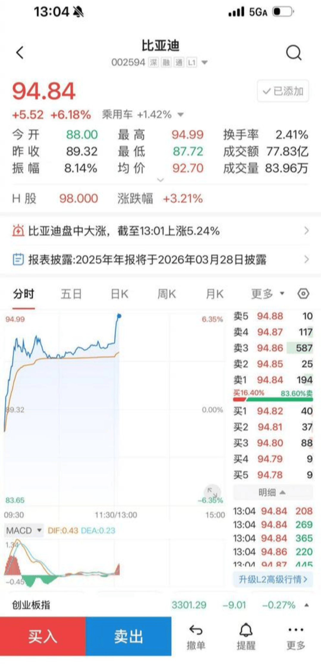 受此消息影响,比亚迪A股股价在发布会官宣当日大幅上涨,收盘涨幅达8.36%,单日成交额突破135亿元,成为汽车板块的领涨标的。市场分析认为,这一技术预期不仅提振了投资者信心,也进一步巩固了比亚迪在电池和整车领域的核心竞争力。