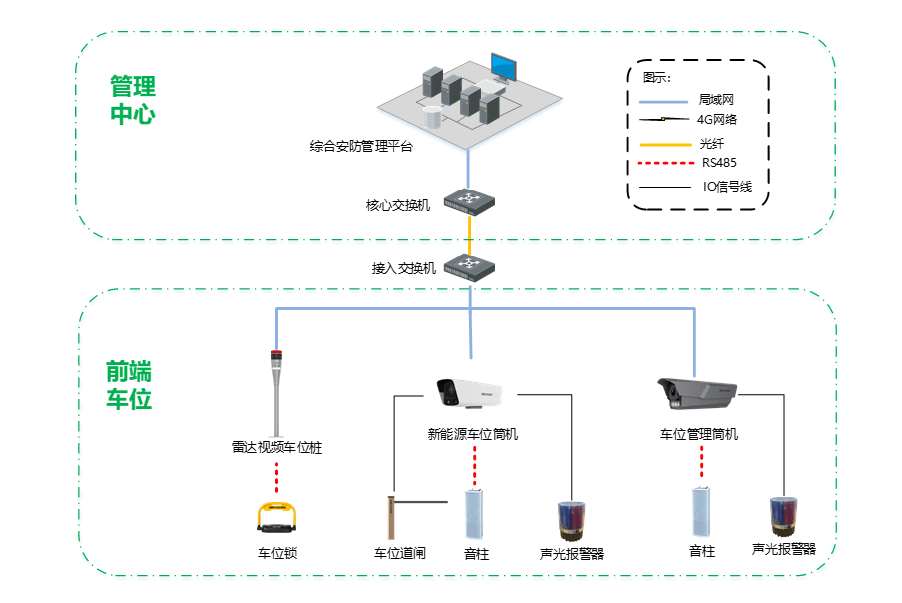 该系统采用双层架构设计,前端设备包含雷达视频车位桩、新能源车位筒机、智能车位锁等六大核心组件。其中雷达视频车位桩集成毫米波雷达与高清摄像头,通过深度学习算法实现车辆驶入/驶出检测精度达99.5%,车牌识别准确率超过98%。新能源车位筒机配备智能补光系统,可在夜间低光照环境下完成新能源车标识识别,支持对特斯拉、比亚迪等主流品牌车型的专项识别。