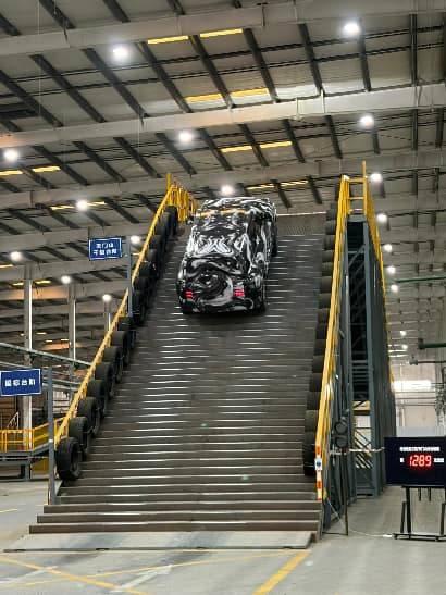 测试现场的电子屏显示,这已经是该车辆进行的第1289次测试。以天门山阶梯的陡峭程度为参照,普通人攀爬都十分吃力,更不用说车辆需要同时应对底盘、速度和平衡性等多重挑战。在如此极端的条件下,轮胎与地面的接触面积极小,压强分布极为不均,稍有不慎就可能出现原地打滑、侧倾甚至后退的情况。这种场景在影视剧中常见,但现实中要实现却需要极高的技术支撑。