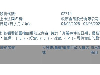 牧原股份(02714.HK)获Pandanus Partners L.P.增持106.1万股