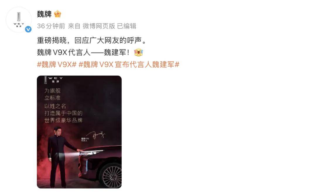当车企老板亲自站上代言舞台,这场由用户推动的营销革命正在汽车圈掀起波澜。长城汽车董事长魏建军近日以代言人身份亮相魏牌V9X发布会,这一打破行业常规的举动,源于数万网友在社交平台的集体呼吁。面对"让创始人代言自家旗舰"的呼声,这位掌舵造车36年的企业家选择用最直接的方式回应市场期待——将自己的姓氏与产品品质深度绑定。