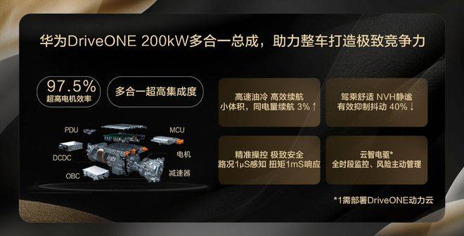 铂智 7所搭载的华为DriveONE六合一高效集成电驱,更是将电动驱动技术推向了新的高度。这款电驱凭借22000rpm的超高转速和功能深度融合技术,实现了三合一的紧凑体积和多合一的丰富功能。同时,通过系统寻优仿真及先进材料的应用,电机效率达到了业界领先的97.5%,为车辆提供了更为强劲且高效的动力支持。