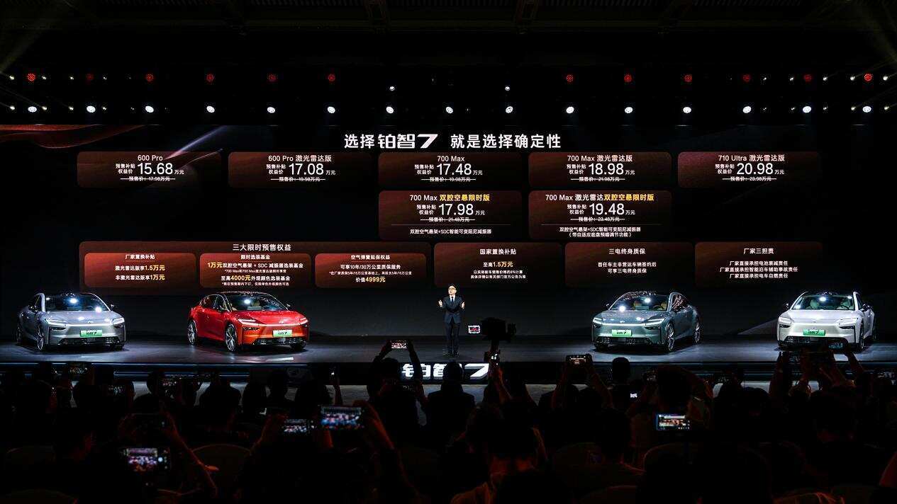 广汽丰田旗下全新旗舰纯电轿车铂智7近日正式开启预售,新车推出五个版本,预售权益价区间为15.68万元至20.98万元。作为主流纯电家轿市场的新入局者,铂智7以“新能源时代的丰田味道”为核心理念,首次将双腔空悬技术下放至17万级市场,并整合激光雷达智驾、鸿蒙座舱等高端配置,试图在价格与品质之间找到平衡点。
