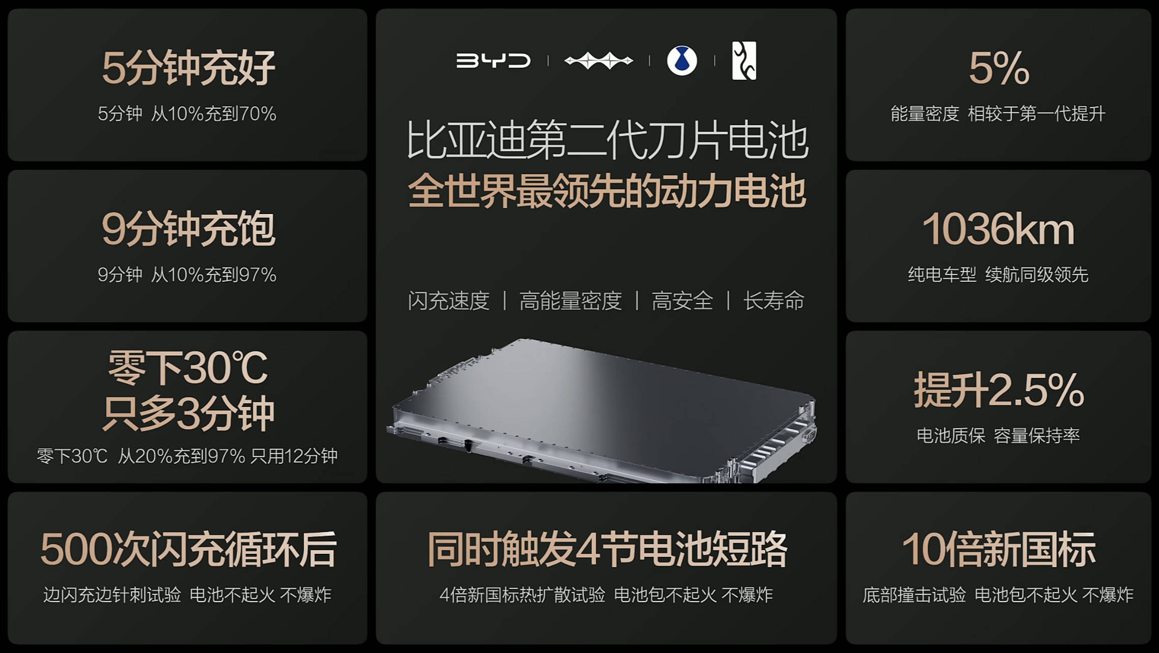 续航与安全的平衡一直是行业难题,而第二代刀片电池实现了两者的完美统一。通过材料创新与结构优化,电池能量密度提升超过5%,搭载该电池的车型续航里程突破1036公里,其中腾势Z9GT更成为当前量产车型中的续航冠军。安全性能方面,电池不仅通过多项远超国标的测试,更完成行业首创的"边闪充边针刺"极限验证——在高速充电状态下遭受针刺仍保持稳定,彻底消除了用户对快充安全的顾虑。