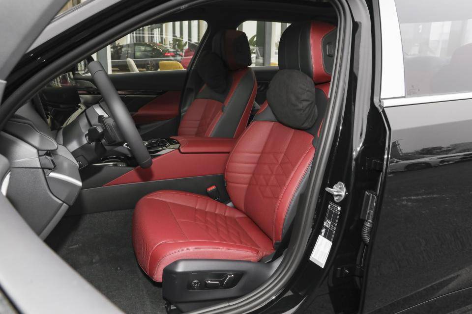 内饰部分,宝马5系展现出科技与豪华的完美融合。中控台配备14.9英寸悬浮式多媒体屏和12.3英寸液晶仪表盘,搭配平底式方向盘,营造出强烈的科技氛围。车内采用大量软质材料包裹,黑红撞色设计彰显轻奢时尚品味,做工用料考究,细节处理精致。