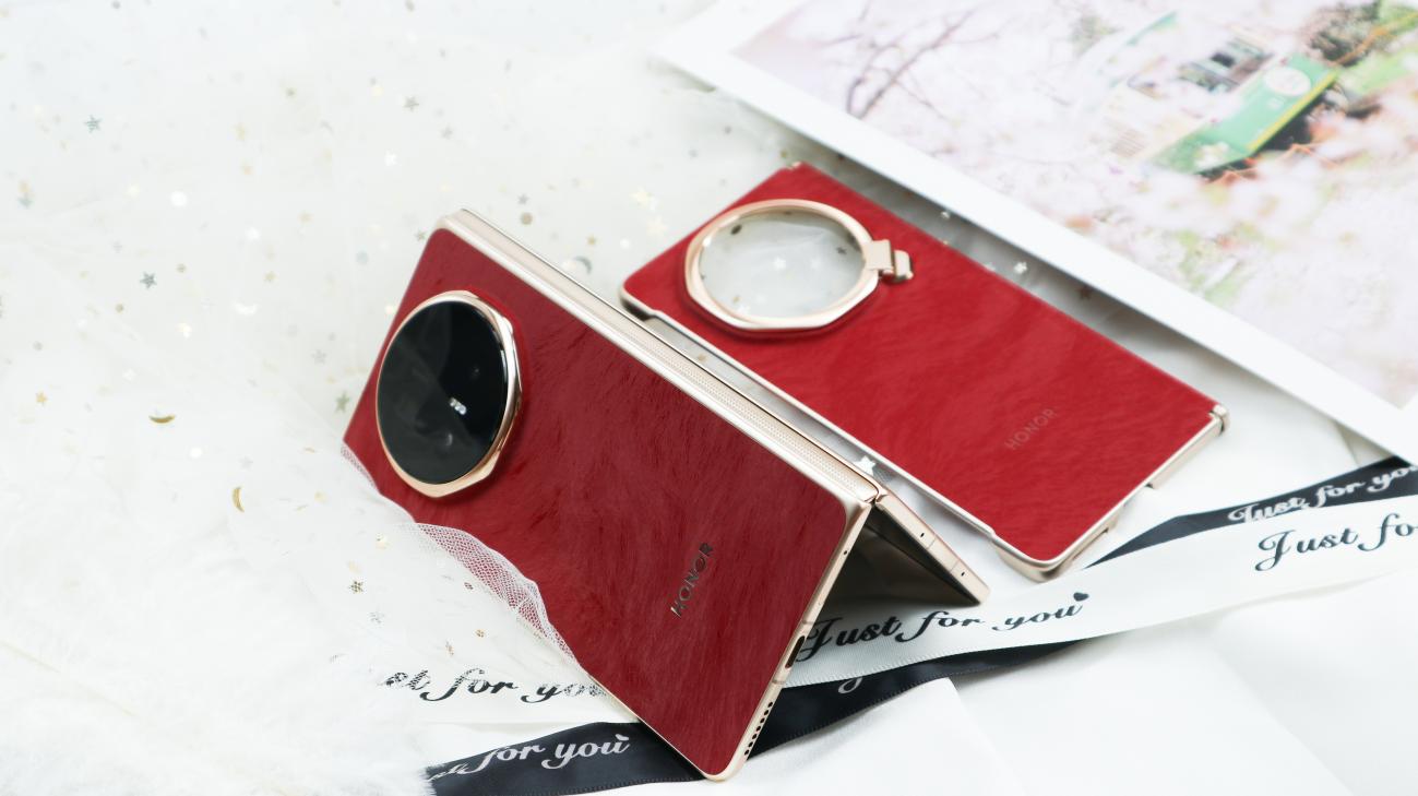 对于商务精英而言,手机不仅是工具,更是个人品味的延伸。荣耀Magic V6在外观设计上实现了轻薄与质感的完美平衡。其雪域白版本折叠态厚度仅8.75mm,展开态薄至4.0mm,重量仅219g,比iPhone Air更纤薄,单手握持毫无压力,轻松塞入西装口袋或商务手包。机身采用纯平面板与直角C边设计,线条利落简约,尽显干练气质。配色方面,赤兔红版本以“马中赤兔,红图大展”为灵感,通过暖调红韵与法式奢绒纹理的碰撞,既展现独特品味,又避免过度张扬,适配商务洽谈与差旅出行等多场景需求。背板皮质与金属中框的一体化衔接,搭配精雕轴盖纹理与八边形DECO设计,进一步强化了科技与奢华的融合感。