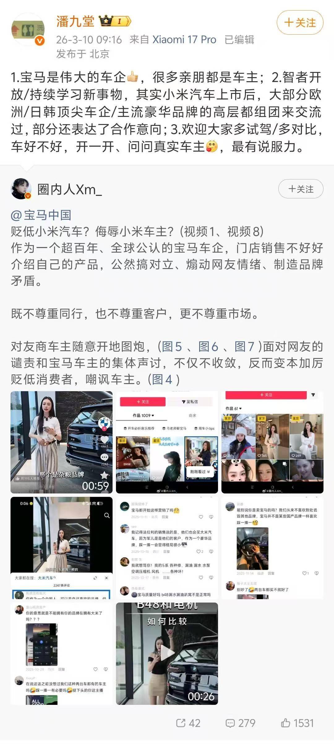 小米产业投资部合伙人潘九堂近日针对“宝马销售直播贬低小米汽车”事件作出公开回应。他透露,自小米汽车正式上市以来,包括欧洲、日韩多家国际车企及主流豪华品牌的高层团队均曾到访交流,部分企业已明确释放合作信号。潘九堂同时呼吁消费者通过亲身试驾和咨询真实车主来评判产品优劣,强调实际体验比舆论争议更具说服力。