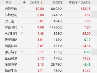 A股锂矿股普涨,威领股份涨停,亿纬锂能涨8%