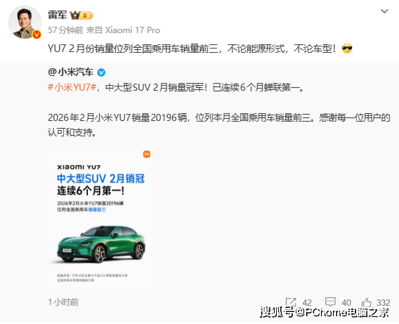 小米集团创始人雷军在转发销量数据时特别强调,这一成绩是在传统销售淡季与新能源汽车市场竞争加剧的双重背景下取得的。他指出,YU7的销量突破不仅验证了小米汽车在主流乘用车市场的竞争力,也为后续产品布局奠定了基础。据悉,小米汽车即将推出新一代SU7车型,该车型将进一步丰富产品矩阵,覆盖更多细分市场需求。