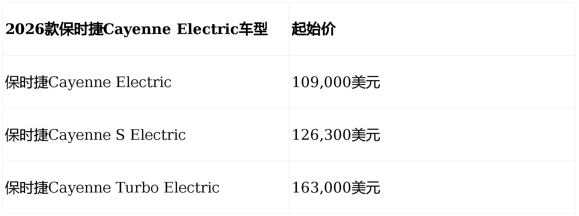 价格方面,2026款保时捷Cayenne S Electric的起售价为126,300美元,这一价格不包含2,350美元的交付费用。对于那些对这款全电动SUV感兴趣的消费者来说,现在已可通过保时捷官方网站进行在线预订。预计首批车辆将于2026年夏末开始交付,届时消费者将能够亲身体验到这款新车型带来的驾驶乐趣。