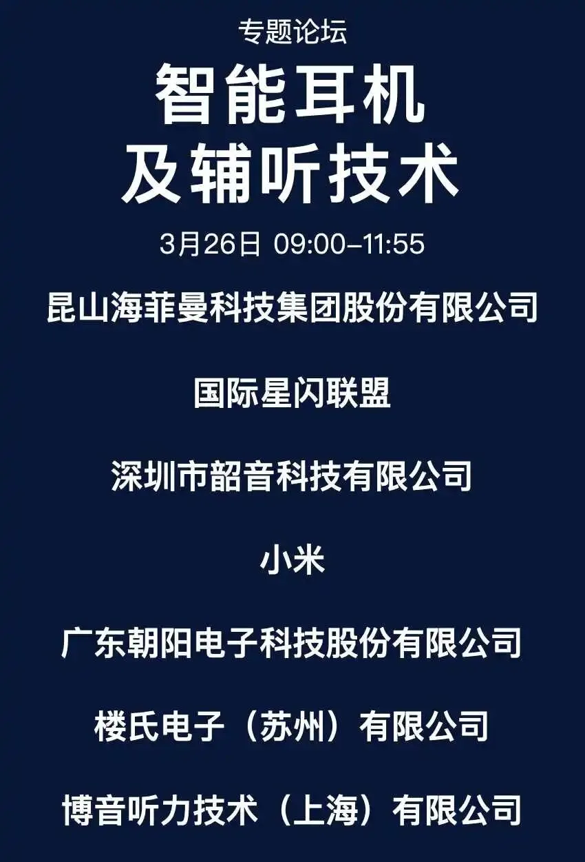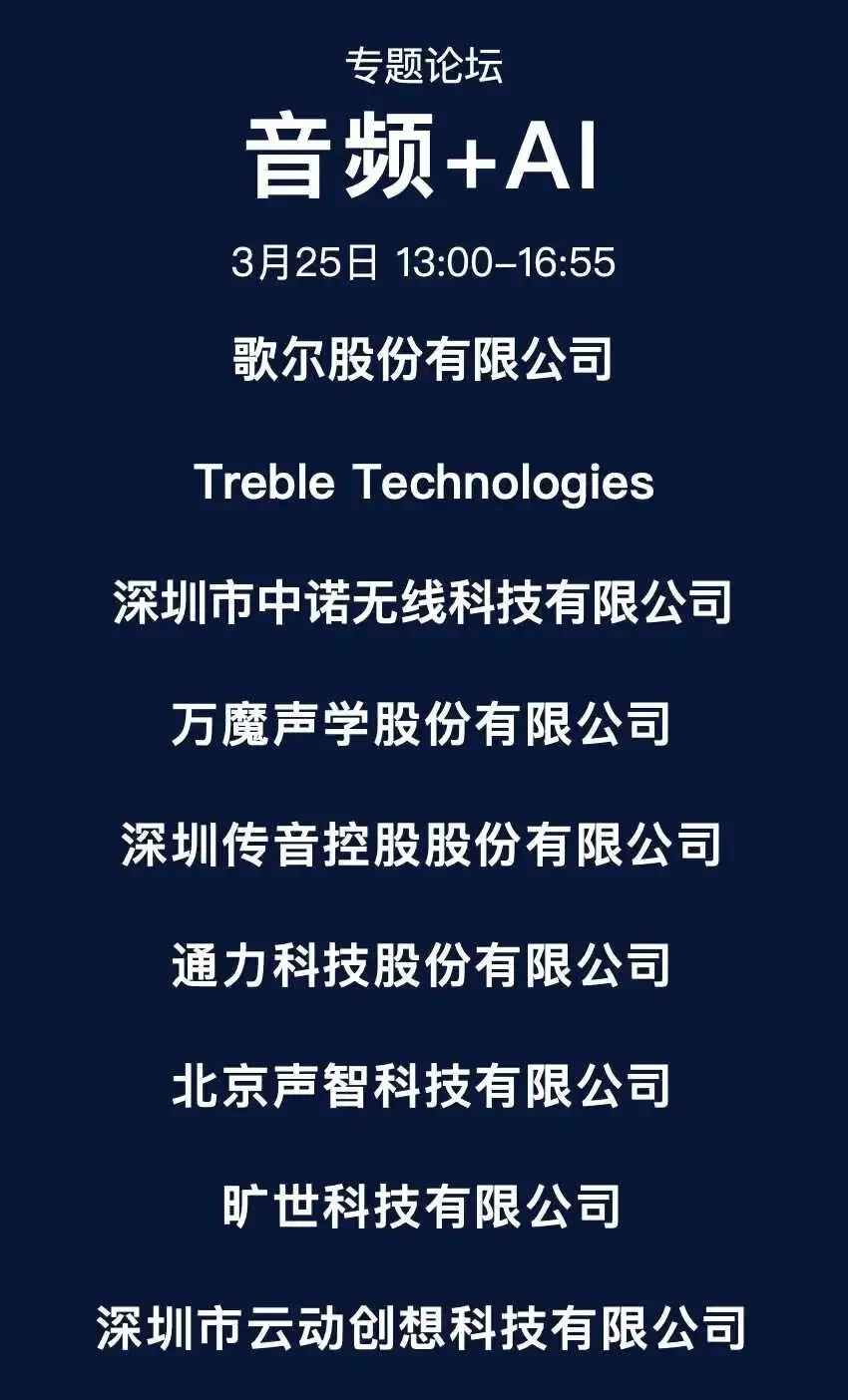 内容覆盖电子产业热点领域及方向,分别包括音频+AI、智能眼镜、智能车载音频、线上智能交互、智能耳机及辅听技术、电声元器件及芯片、融媒体音频、声音与音乐技术、语音合成。