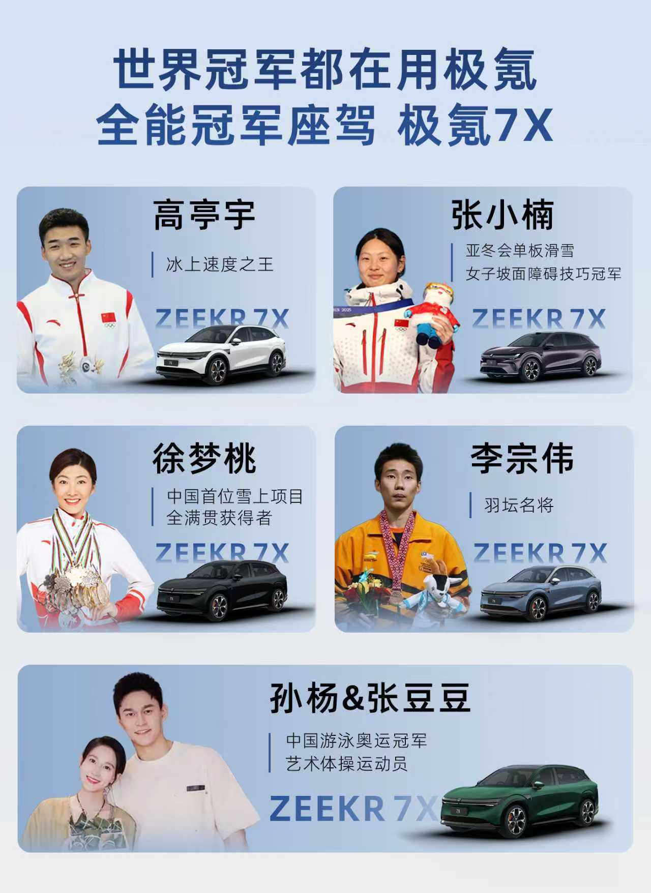 李宗伟的加入,让极氪7X的冠军车主阵营再添星光。此前,徐梦桃、高亭宇、孙杨等体坛顶尖运动员已先后成为这款车的车主。这群在各自领域追求极致、对专业度有着严苛要求的运动员,不约而同选择极氪7X,无疑是对其全能实力的有力背书。而李宗伟作为顾家父亲的代表,他的选择更凸显了这款车在家庭场景中的核心优势——既能满足专业人士对性能和操控的追求,又能为家庭提供可靠的安全守护。