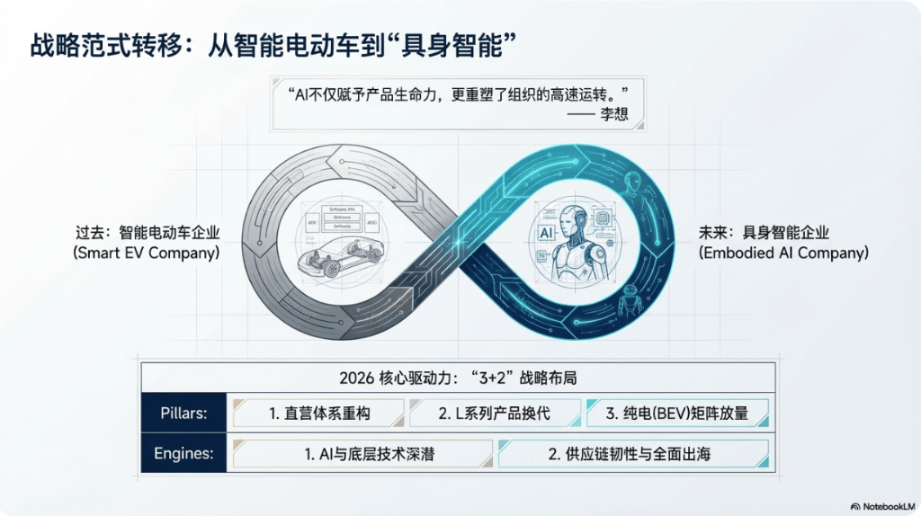 理想汽车近日公布2025年第四季度及全年财报,显示公司在新能源汽车市场竞争加剧背景下,正通过组织变革、产品升级与AI战略转型三管齐下应对挑战。尽管短期财务承压局面尚未逆转,但管理层对2026年战略调整后的市场表现持乐观态度,目标实现全年销量同比增长20%。