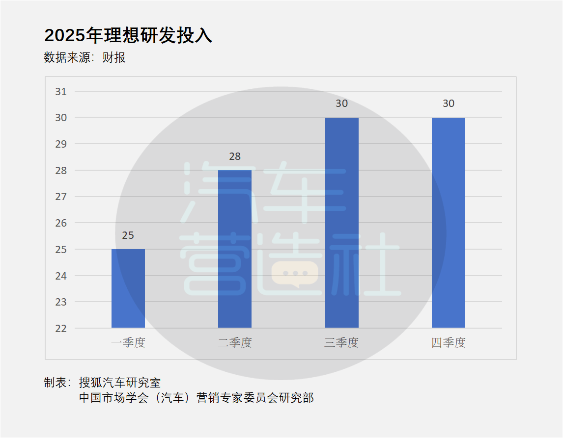 在利润承压的情况下,理想汽车在研发投入上毫不吝啬。过去一年,每个季度研发费用基本稳定在28亿元左右,三、四季度甚至持续加码。2025年,理想共投入113亿元用于研发,其中超过50%投向人工智能领域,且2026年将保持这一投入力度。研发重点聚焦高压纯电平台、5C电池、智能驾驶、智能座舱、操作系统等领域,持续推进VLA Driver、LiXiangTongXue Agent、Mind VLA和LiHalo OS等能力建设。李想多次表示,理想要在“让汽车进化成真正的机器人”赛道上持续深耕,2026年将是理想进化为具身智能企业的关键一年,企业将致力于拉高技术护城河,完成从智能电动车向具身智能企业的跃迁。在理想的规划中,AI不仅是智能驾驶,更是涵盖驾驶、座舱、操作系统乃至具身智能的广义智能化能力。