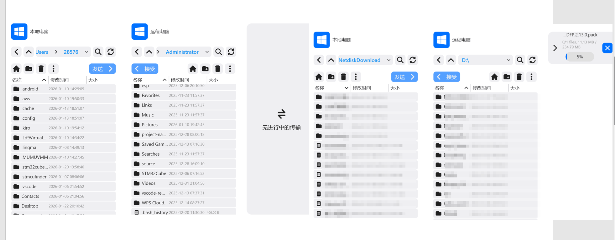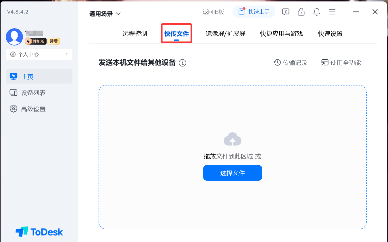 ToDesk 支持“快传文件”功能,能够实现快速、稳定的文件传输。无论是单个大文件还是大量小文件,都可以通过拖拽或选择路径的方式快速传输到远程设备,省去了使用第三方网盘或邮件传输的麻烦。