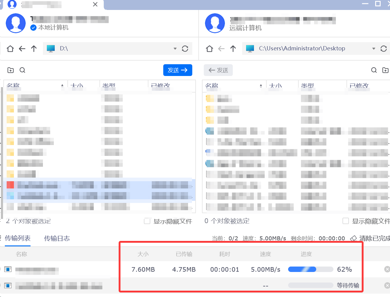 同样的在传输文件的过程中,速度也是非常重要的一个点,在使用ToDesk进行文件传输的时候速度是非常快的,网络较好的情况下,最高可以支持文件传输速度达40MB/S。