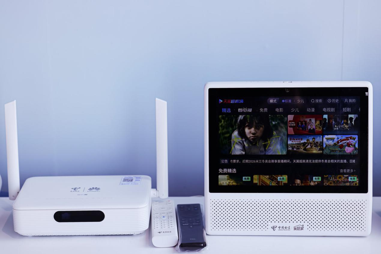 天翼智盒则实现集光猫、路由器、机顶盒于一体,搭载最新Wi-Fi7技术,目前可实现超2000M高速网络家庭空间无缝覆盖,信号全满格。在内容与交互层面,天翼智盒打通“中国蓝电信电视”内容生态,可一站式畅享“爱优腾芒B站全能看”,更以AI技术革新电视交互体验,首创多屏协同流转功能,手机小屏可控制电视大屏,小屏大屏同步镜像画面,实现“走到哪看到哪”,AI语音控制功能则让用户一键直达想看内容,大幅提升操作便捷性。