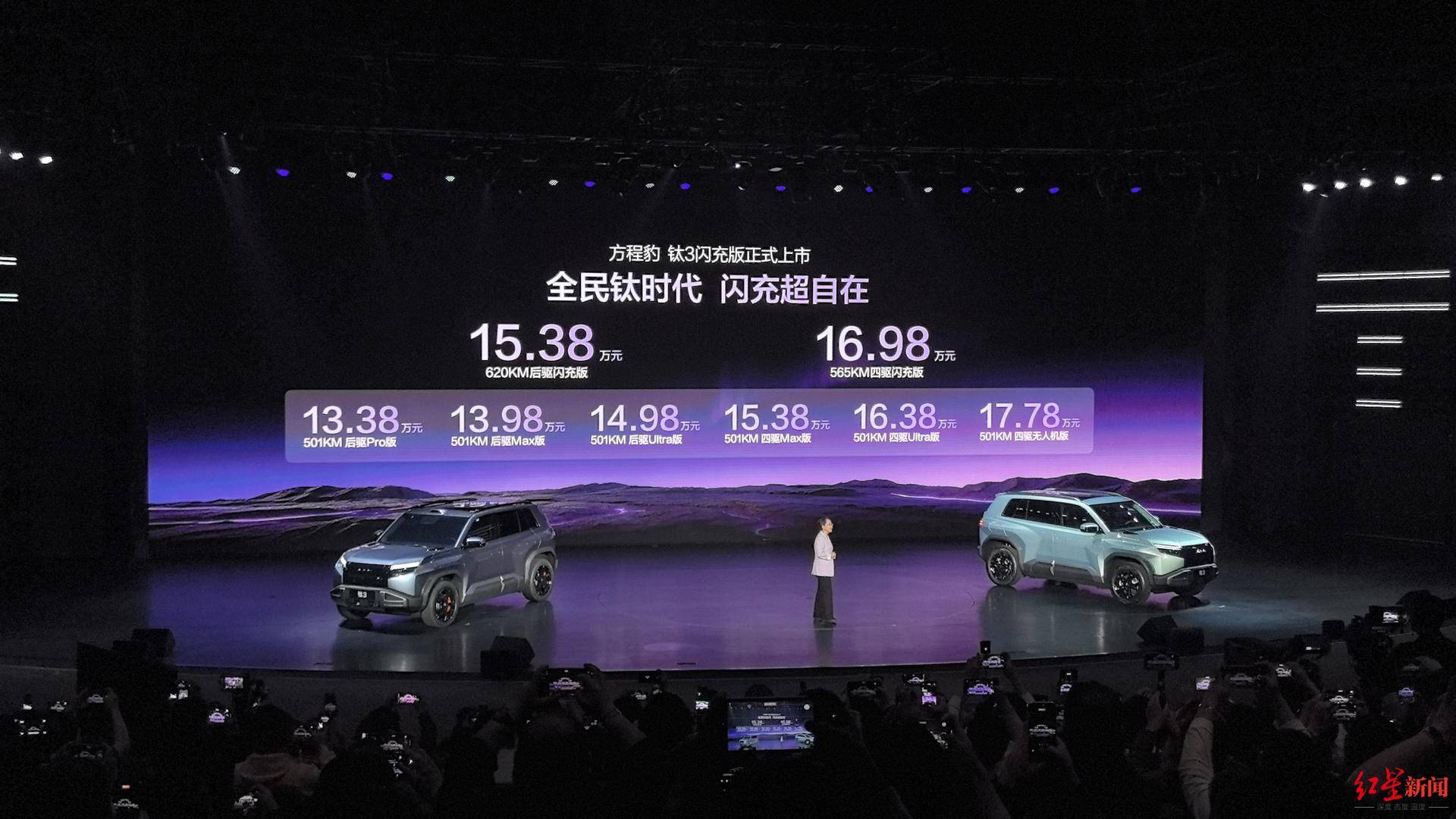方程豹钛3闪充版近日正式登陆市场,这款新车最大亮点在于搭载了比亚迪最新发布的闪充技术。据官方数据,该技术可在8分45秒内将电量从10%充至97%,综合续航里程达602公里。此次上市共推出两个配置版本:620KM后驱闪充版售价15.38万元,565KM四驱闪充版售价16.98万元,首任车主可享受18个月免费闪充服务。