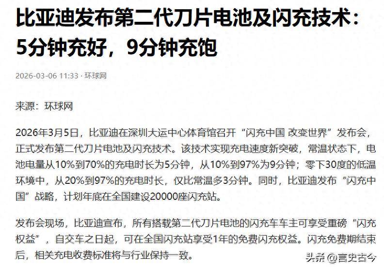 一场让燃油车市场震动的新品发布会,让比亚迪再次成为行业焦点。第二代刀片电池与闪充技术的组合,不仅刷新了电动车性能标准,更直接挑战了传统燃油车的生存空间。这项技术突破的核心,是实现了9分钟将电量从10%充至97%的极速补能,充电效率首次与燃油车加油时间持平。