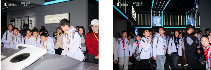 在追觅宇宙展馆,学生们好奇地观察扫地机的运动演示、体验高速吹风机的强劲动力;零距离观摩“星空计划”概念车,参与模拟太空采摘互动,感受脑电波控制等人机交互技术。各类前沿技术的直观呈现,为孩子们提供了接触前沿科技的机会。