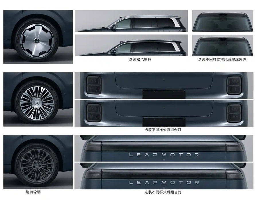 从申报信息来看,零跑D19提供纯电和增程两种动力形式,且均推出三电机四驱版本。纯电版车型采用前一后二的三电机布局,三台电机最大功率均为180千瓦,综合功率达540千瓦;增程版则搭载1.5T增程器,最大功率95千瓦,同样配备三电机四驱系统,其中前电机最大功率100千瓦,后两台电机均为150千瓦。尽管续航和能耗数据尚未公布,但三电机版本的性能表现已引发市场期待。