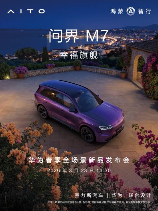 当“夜紫”新色与全新问界M7强大的产品力相互碰撞,必将掀起一场色彩与价值交织的潮流风暴。3月23日,华为春季全场景新品发布会将成为这场风暴的中心,让我们一同见证全新问界M7如何凭借色彩重新定义豪华。