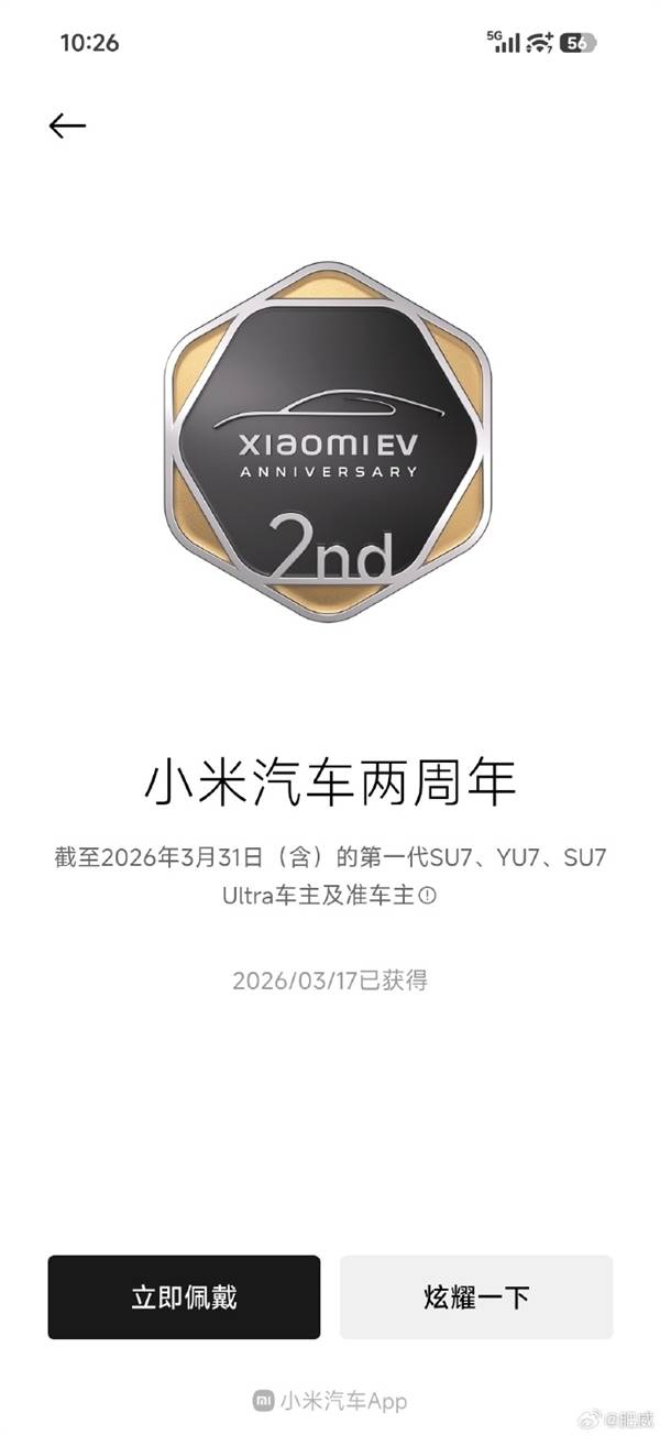 根据规则,本次发放的三枚虚拟勋章各有专属领取条件。其中“小米汽车两周年纪念勋章”面向本月底前持有SU7、YU7或SU7 Ultra的车主及准车主开放;“第一代SU7支持者勋章”则无车型限制,所有购买过初代SU7的用户均可申领;而“梦想同行者勋章”仅限初代SU7、YU7及SU7 Ultra首销期的首任车主获取。值得关注的是,虚拟勋章领取条件较为宽松,不限制车辆过户或账号绑定情况,历史车主与现车主均可按条件领取。