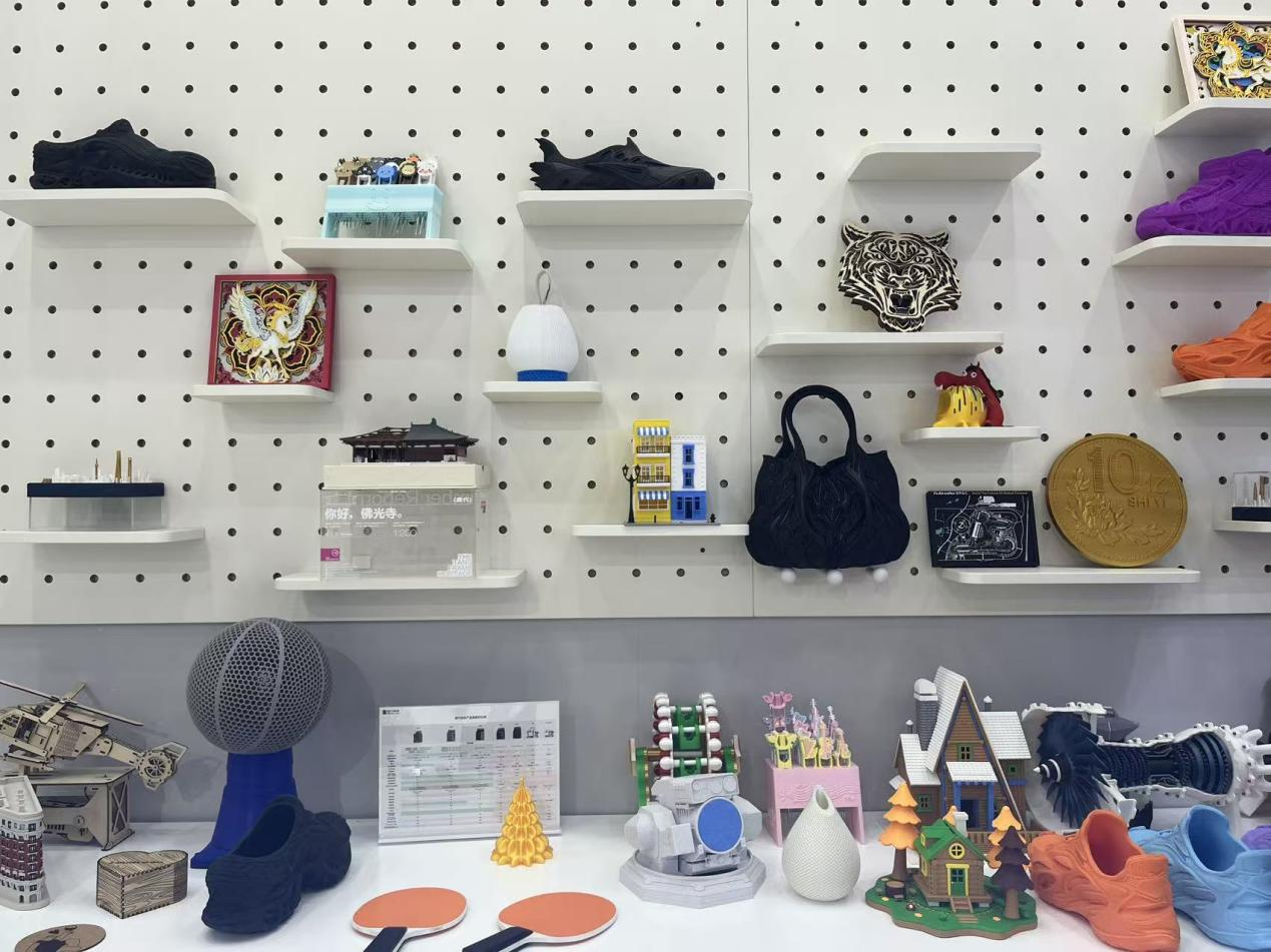 展会现场,拓竹陈列了多款特色模型,涵盖消费级与工业级两大品类:消费级及工艺类模型包括激光刀切模型、花瓶、版画、浮雕画等,满足日常创意需求;工业级模型则包括头盔、定制鞋履、发动机核心部件等,展现高端制造潜力。拓竹曾在2025年蔚来杯中国大学生电动方程式大赛中服务超40支参赛队伍,打印超130个赛车核心精密部件,印证了3D打印从消费创意走向工业精密制造的多元价值。