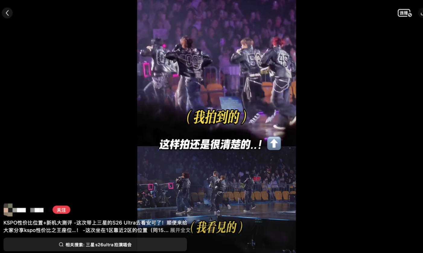 随着演唱会经济的持续火爆,S26 Ultra的影像能力在“实战”中得到了验证。多位数码博主和追星女孩将其封为新一代的“演唱会神器”。
