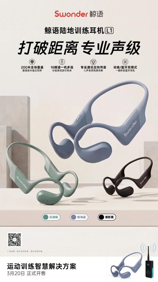 鲸语陆地训练耳机L1 & T1现已在鲸语官方渠道正式开售。即刻入手,解锁远程训练新体验!
