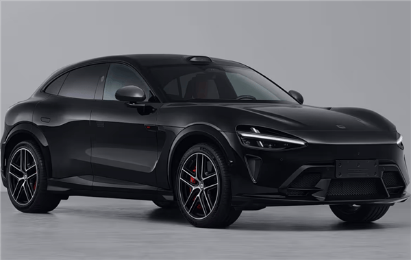 外观设计融合科技感与力量美学,哑光黑色车漆覆盖全车,引擎盖隆起的四条筋线与贯穿式LED灯带形成视觉冲击。前大灯组采用锐利的多边形设计,与下方梯形进气口构成层次分明的车头造型。车顶搭载的激光雷达模块预示着其具备高阶智能驾驶能力,隐藏式车门把手与19英寸多辐式运动轮毂(可选装21英寸)进一步强化科技属性,红色制动卡钳在黑色车身映衬下尤为醒目。