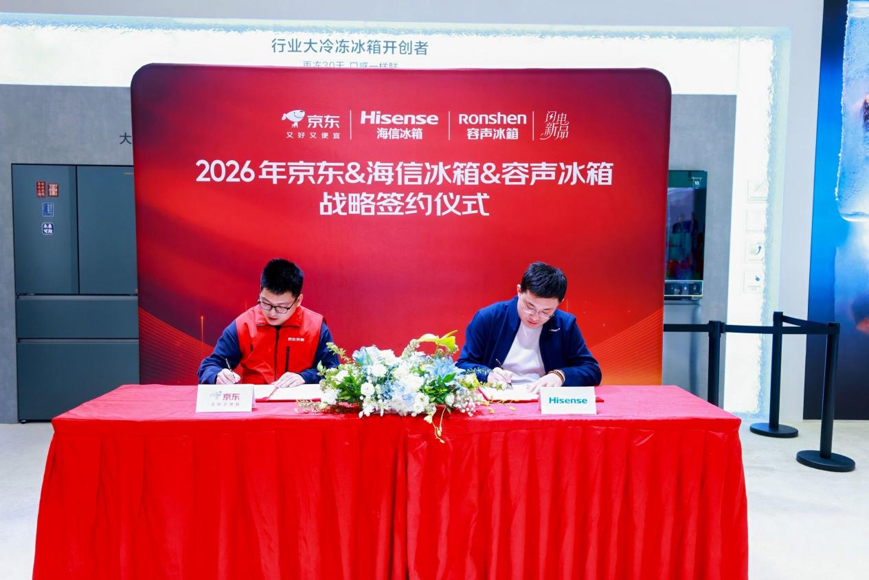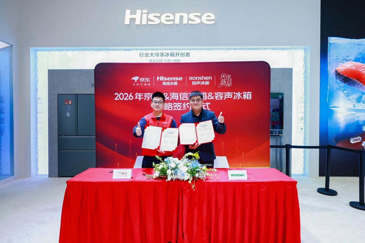 3月12日,在2026年中国家电及消费电子博览会(AWE 2026)期间,京东与海信围绕海信大薄荷新品冰箱、容声大方糕552新品冰箱达成战略合作。海信集团冰冷事业部海信电商运营部总经理王玉麟、海信集团冰冷事业部容声电商运营部总经理孙浩刚、京东家电家居业务负责人共同出席签约仪式。双方聚焦新品推广、产品沟通及市场落地等方向展开协同,更好满足消费者对品质家电产品的升级需求。