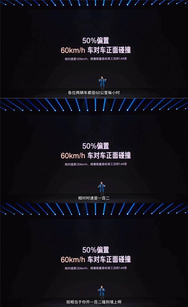 根据中汽中心公布的测试数据,新一代SU7在50%偏置碰撞测试中,采用两车以60km/h相对速度对撞的测试方式,实际碰撞能量达到标准工况的1.44倍。雷军特别强调,这种测试条件模拟了现实中更严苛的交通事故场景,能更全面评估车辆结构安全性。他同时澄清,此前在发布会上将"相对速度120km/h"错误类比为"120km/h时速撞墙",这一表述确实存在物理概念混淆。