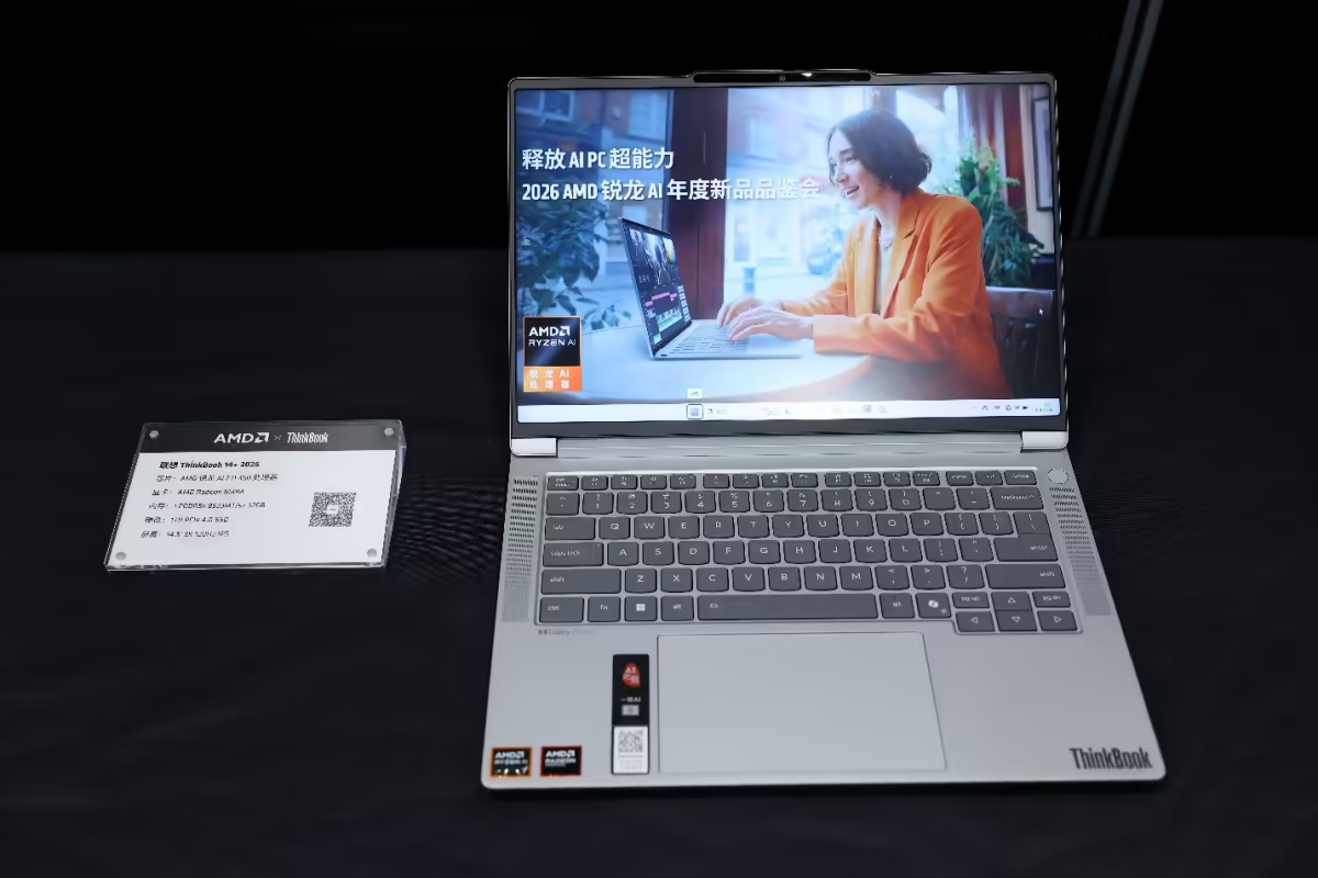 搭载 AMD 锐龙 AI 400 系列,包括华硕无畏 Pro16 锐龙版 2026、华硕 a 豆 14 Air 2026、华硕天选 Air 2026、华硕灵耀 16 Air,联想小新 Pro16 GT、ThinkBook 14+ 和机械革命星耀 15 等在内的诸多新品都在现场做了介绍和展示。