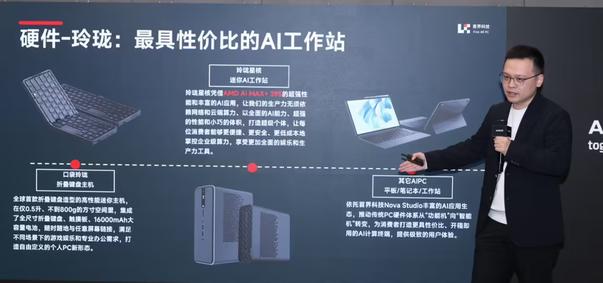 首界科技运营负责人邱添先生则分享了一系列搭载锐龙 AI Max+ 395 处理器的 AI 工作站“玲珑”系列,以及如何电脑上通过配置 AI 智能体,将 AI 运算精准隔离在本地,保护用户数据安全及隐私。