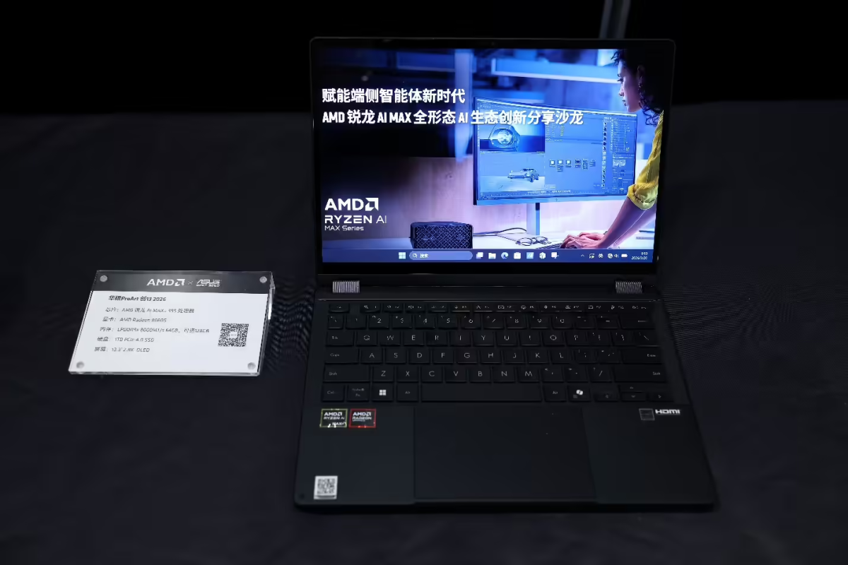 搭载 AMD 锐龙 AI Max+ 系列处理器的笔记本华硕 ProArt 创 13、华硕天选 Air 2026、惠普战 99 Ultra、ROG 幻 X、玄派玄机 16 等都已上市或者在现场展示,还有一款全新的搭载锐龙 AI Max 处理器的掌机壹号本 OneXPlayer 也可以在现场上手体验。