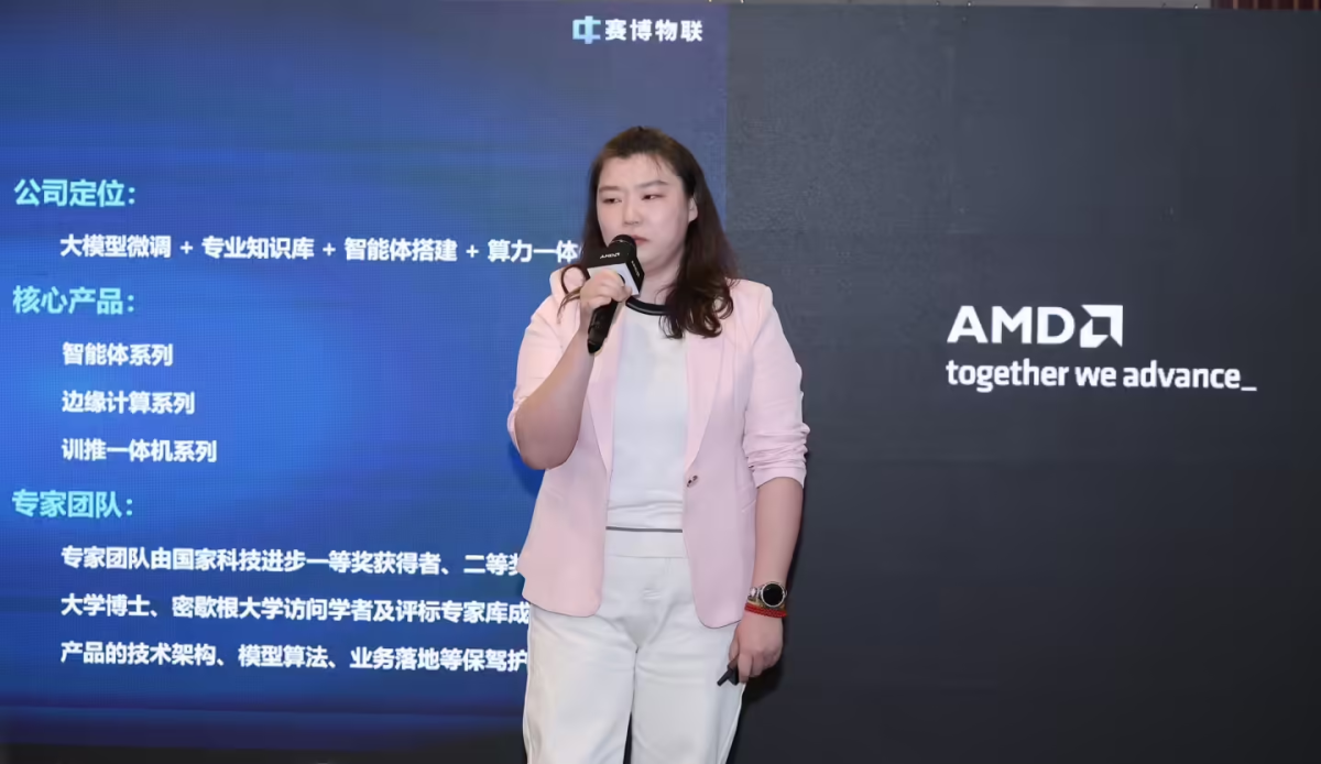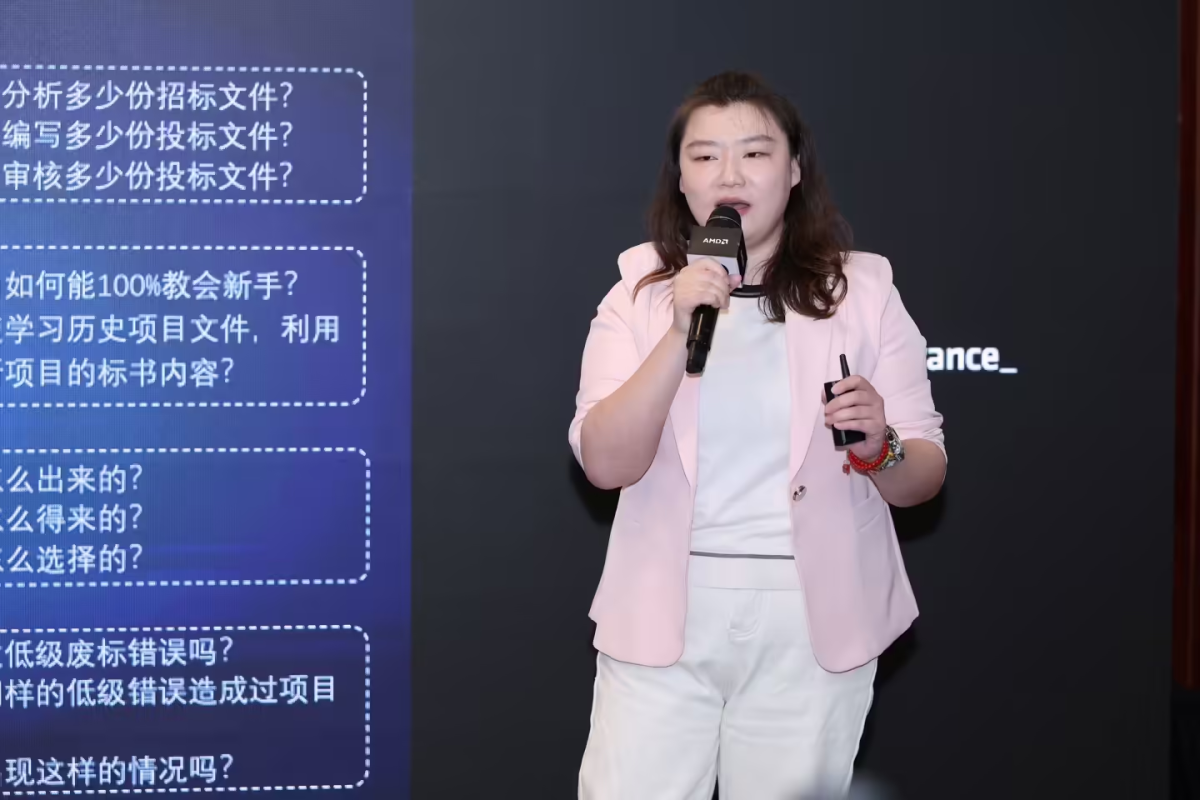 在下午的沙龙分享会上,赛博物联市场总监吴佳祺女士现场分享了搭载锐龙 AI Max+ 395 处理器的设备如何通过智能体应用,帮助客户实现高效精准的标书撰写。