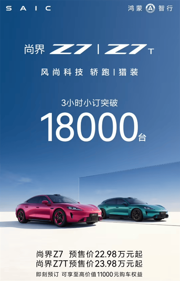 今日下午,鸿蒙智行旗下尚界品牌正式开启尚界Z7和尚界Z7T两款轿跑车型的预售,其中尚界Z7预售价22.98万元起,Z7T预售价23.98万元起。作为鸿蒙智行首款轿跑车型,尚界Z7直接对标小米新一代SU7,在价格、配置和续航等方面展开激烈竞争。