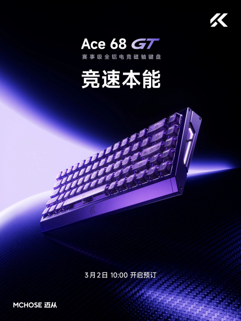 迈从Ace 68系列提供了三个侧重点不同的选择:迈从Ace 68主打均衡性能,兼顾办公与游戏双重需求;迈从Ace 68 Air以全系混轴玩法和炫彩律动灯箱为特点,配合轻量化机身,适合喜欢轴体搭配和桌面灯效的玩家;迈从Ace 68 Turbo则搭载全自研天问方案,实现16K回报率+0.06ms延迟,是追求极限性能玩家的首选。