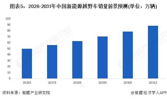 基于当前的市场趋势和发展态势,预计到2031年,中国新能源越野车销量有望达到88万辆,2026 - 2031年的年均复合增速为12%。这一增长趋势不仅反映了新能源越野车市场的巨大潜力,也为车企和相关产业链带来了新的发展机遇。