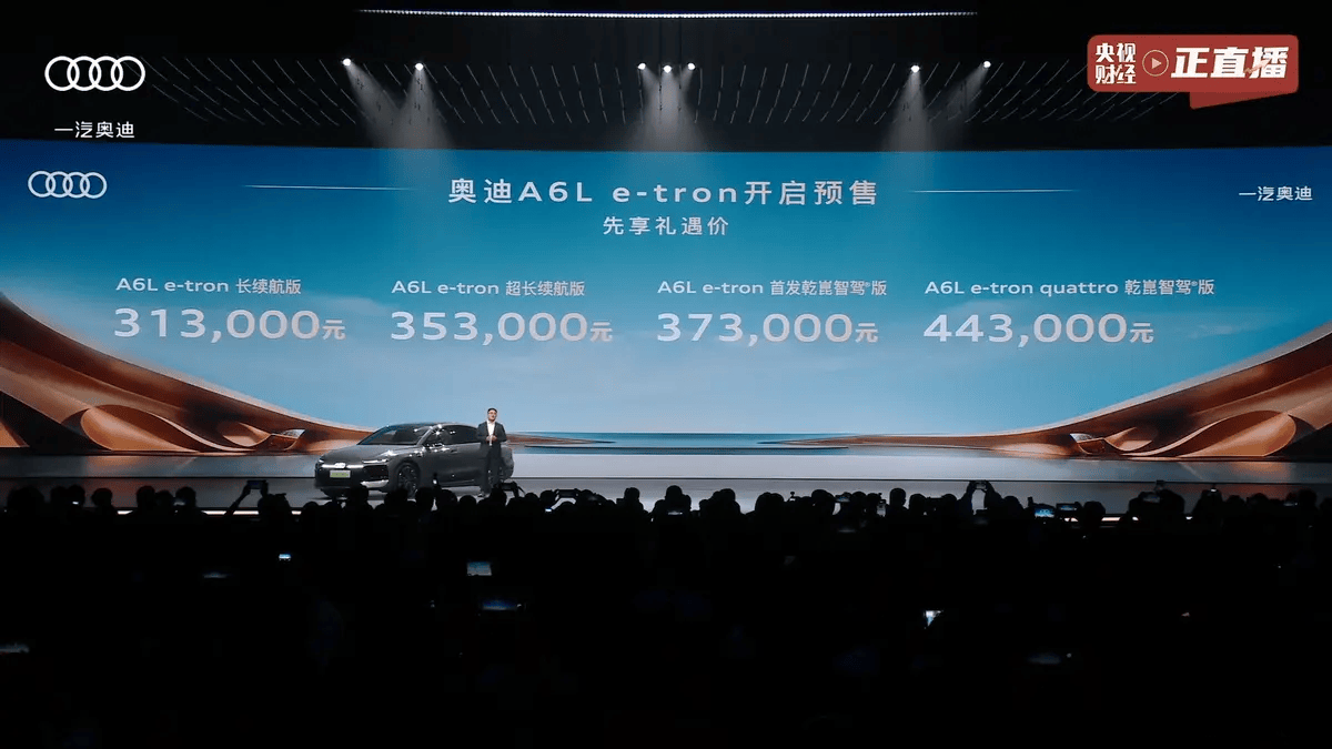 奥迪全新纯电中大型轿车A6L e-tron正式开启预售,共推出4款车型,预售价区间为31.3万至44.3万元。作为PPE豪华纯电平台打造的首款轿车,新车轴距达3076mm,较燃油版A6L增加52mm,车身尺寸为5073/1942/1522mm,配备20英寸轮圈。车辆采用800V高压电气架构,CLTC工况下最大续航里程达815km,支持270kW超快充,10分钟可补能302km,10%-80%电量充电仅需20.7分钟。