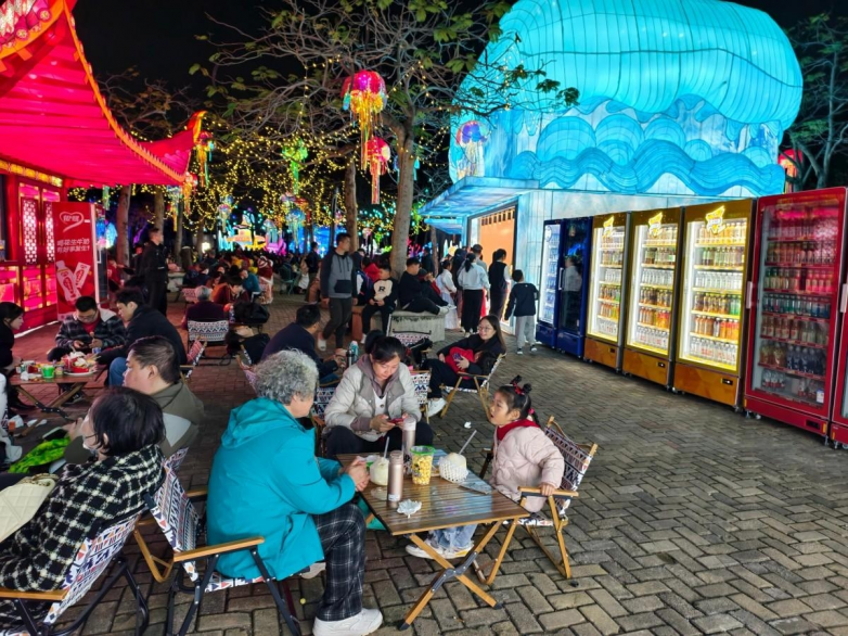 与此同时,园博苑花灯乐园对于家长也有很强的友好度。相比节奏过快、动线拥挤的高密度夜游场景,这里更具园区型空间的舒展感,能够让家庭游客在花海、园林与灯影交织的氛围中,以更轻松的节奏边走边逛、边看边玩。夜晚的大秀演艺带来足够的看点和仪式感,NPC互动提升陪伴的参与度,电音节则为整体氛围注入更鲜活、更热闹的春夜情绪,而各类 餐饮小吃和休闲消费场景 的加入,也让“夜游”从单一观赏变成一场更完整的家庭出游体验。孩子可以玩得开心,大人也能吃得尽兴、逛得轻松、拍得出片,全家人在同一个空间里都能找到属于自己的乐趣。