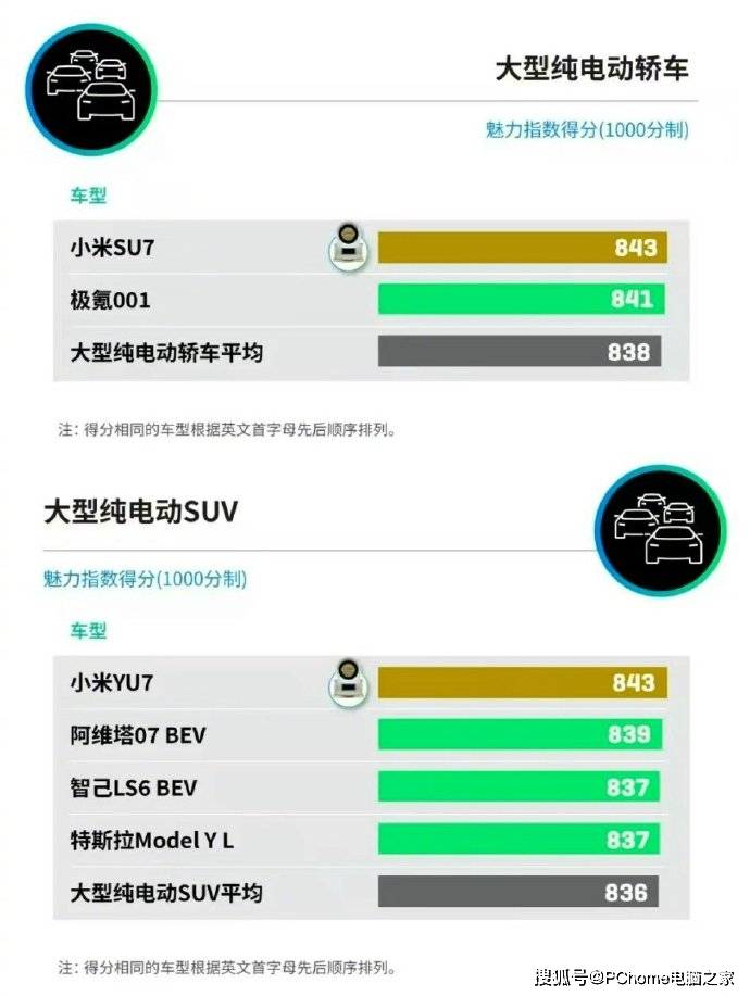 小米集团在新能源汽车领域再传捷报。据可靠消息,在最新发布的2026中国新能源汽车产品魅力指数研究榜单(NEV-APEAL)中,小米汽车旗下SU7与YU7两款主力车型分别在各自细分市场拔得头筹,展现出强劲的市场竞争力。