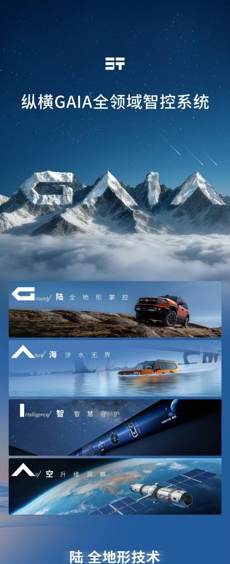 纵横GAIA全领域智控系统未来将全面赋能纵横G600、G700、F700等车型,为产品赋予全维度的越野能力升级。让陆海智空四维融合的全域越野技术从核心研发成果,切实落地为用户可感知、可体验的全新越野能力,真正实现技术成果向终端体验的转化。