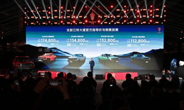 全新江铃大道皮卡近日正式登陆市场,推出涵盖商用、越野及乘用场景的多款车型,售价区间为11.28万至17.48万元。此次上市的车型阵容包括全能者、山地版、追光者及顶配敢探者,通过动力系统升级与越野配置“原厂化”策略,试图在竞争激烈的皮卡市场中开辟新赛道。