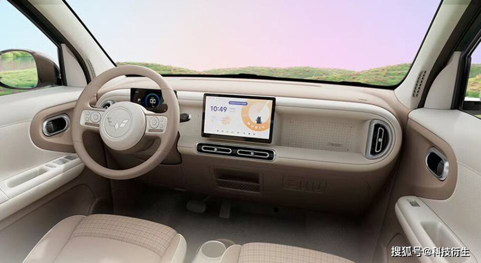 进入车内,焦糖奶油配色营造出温馨舒适的氛围,棕与奶白的组合既经典又时尚。中控采用胶囊形设计,左右两边的半圆空调出风口与整体风格相得益彰。10.1英寸的妙控场景屏搭载萌趣UI,为驾驶增添了不少乐趣。7英寸彩色液晶仪表盘则清晰展示了车辆的各种信息。经典的双辐方向盘和电子怀挡均配备实体按键,操作便捷。前排的棕白格趣座椅可放倒至164°,让休息更加舒适。车内还设有20处储物空间,后排放倒后,后备厢容积可达838L,满足日常出行需求。