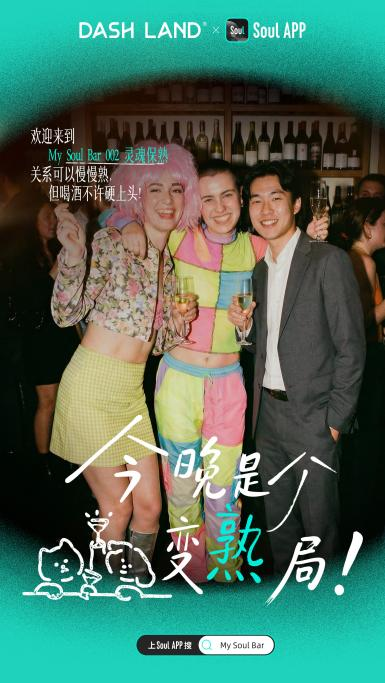 这一次 Soul x DASH LAND 联名酒馆开业,酒精不是重点,真实的连结才是。通过这 7 家酒馆,Soul 把手机里的“灵魂社交”变成了推门可见的真实陪伴。