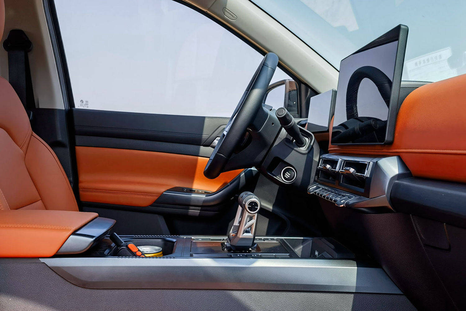 内饰方面,全新星际L采用大面积软质材料包裹,配备皮质座椅和悬浮式中控大屏。该屏幕不仅支持苹果CarPlay和华为HiCar等主流手机互联功能,还集成了360度全景影像系统,无论是商用载货还是家用出游都能提供便利。动力系统从2.0T柴油升级为2.5T柴油发动机,最大功率165kW,峰值扭矩520N·m,零百加速仅需9.6秒,拖拽质量可达3.5吨。底盘采用7横2纵整体式框架结构,配备博格华纳四驱系统和可选装的三把锁(中央、前后桥差速锁),使其具备出色的越野脱困能力。