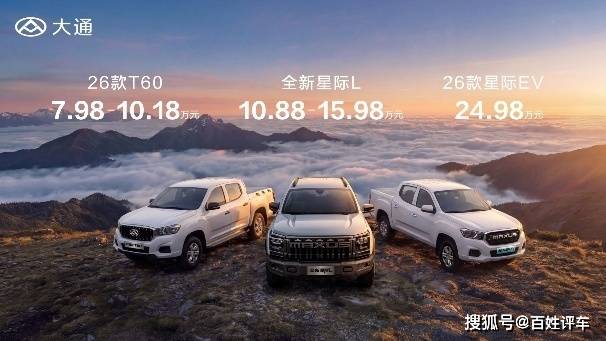 “全球皮卡专家”大通在无锡智造基地迎来品牌发展重要时刻,三款全新皮卡车型——全新星际L、26款星际EV、26款T60同步上市,起售价7.98万元。与此同时,大通皮卡第40万辆整车正式下线,标志着品牌在十年发展历程中迈入全新阶段,为下一个十年的征程奠定坚实基础。